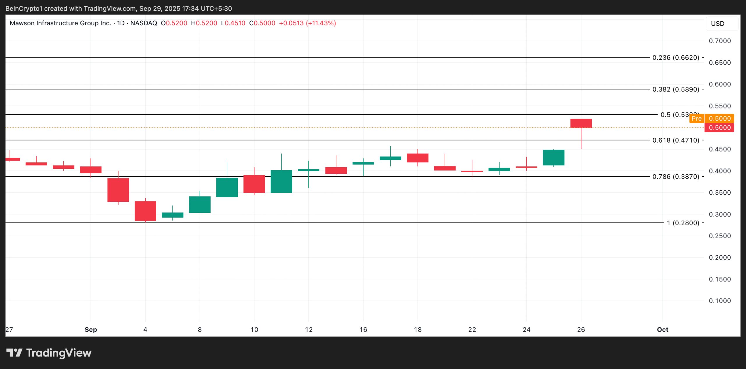 Conversely, MIGI could retreat and test support near $0.47 if selling pressure picks up.