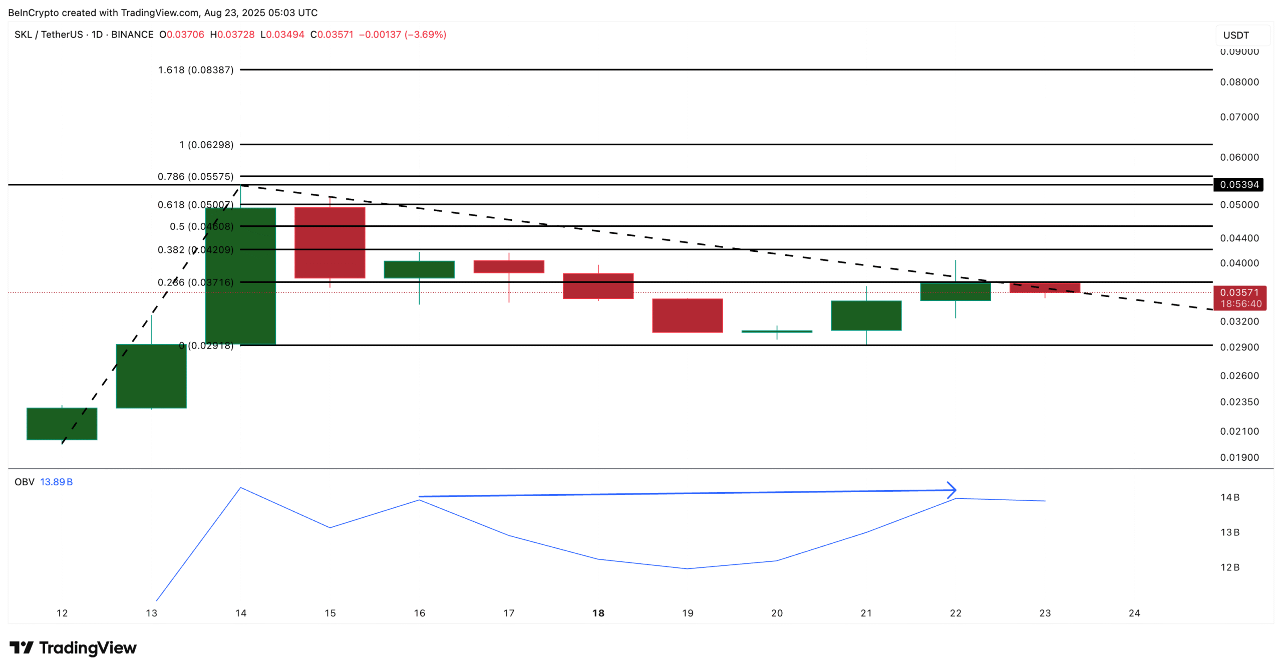 However, a dip under $0.029 could invalidate the bullish outlook, priming the SKL price for new lows.