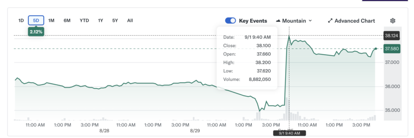 Bank of China’s Hong Kong-listed shares jumped 6.7% on Monday to close at HKD 37.580, after local reports suggested the lender’s city unit is preparing to apply for a stablecoin issuer license. The move comes just weeks after Hong Kong rolled out one of the world’s first dedicated licensing frameworks for fiat-referenced stablecoins on August 1.
