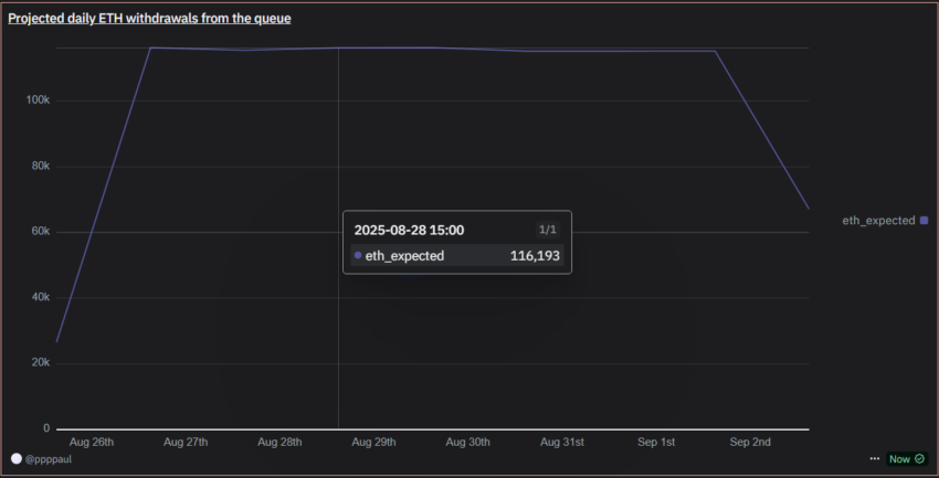 According to on-chain data, roughly 115,000 ETH will exit staking daily this week. At current prices, it is nearly $4,600, which equals $529 million in circulation each day.
