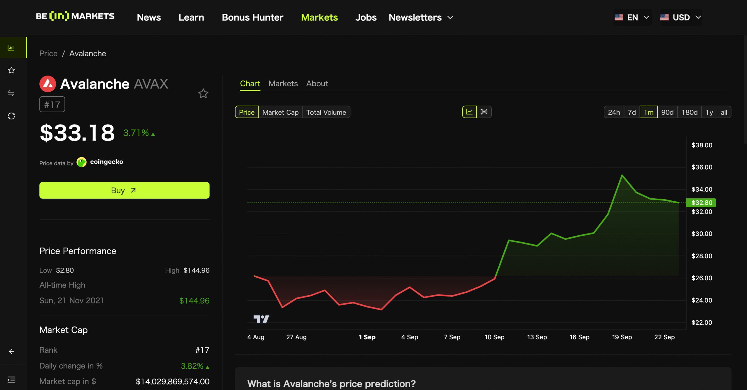 The positive news and strategic initiatives have also influenced AVAX’s market performance. As of the morning of September 23, during Asian trading hours, AVAX was trading at $33.18.