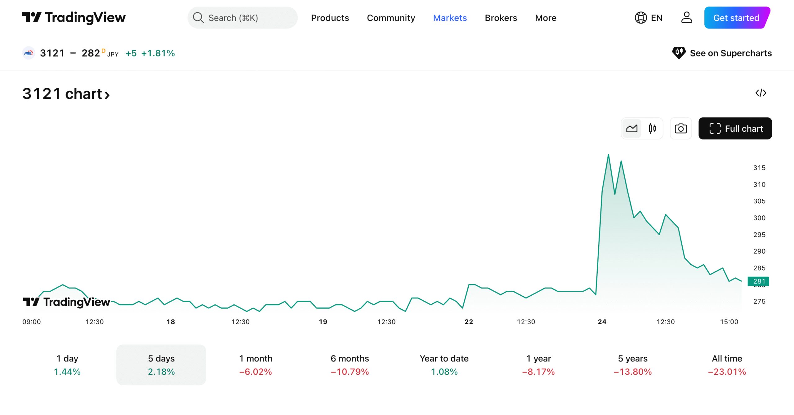 The Tokyo Stock Exchange paused trading on September 23 for a national holiday, so investors resumed transactions on September 24. The stock reached ¥319 intraday, a ¥41 increase from the previous close of ¥ 278, before ending the day at ¥ 281, up approximately 1.44%.
