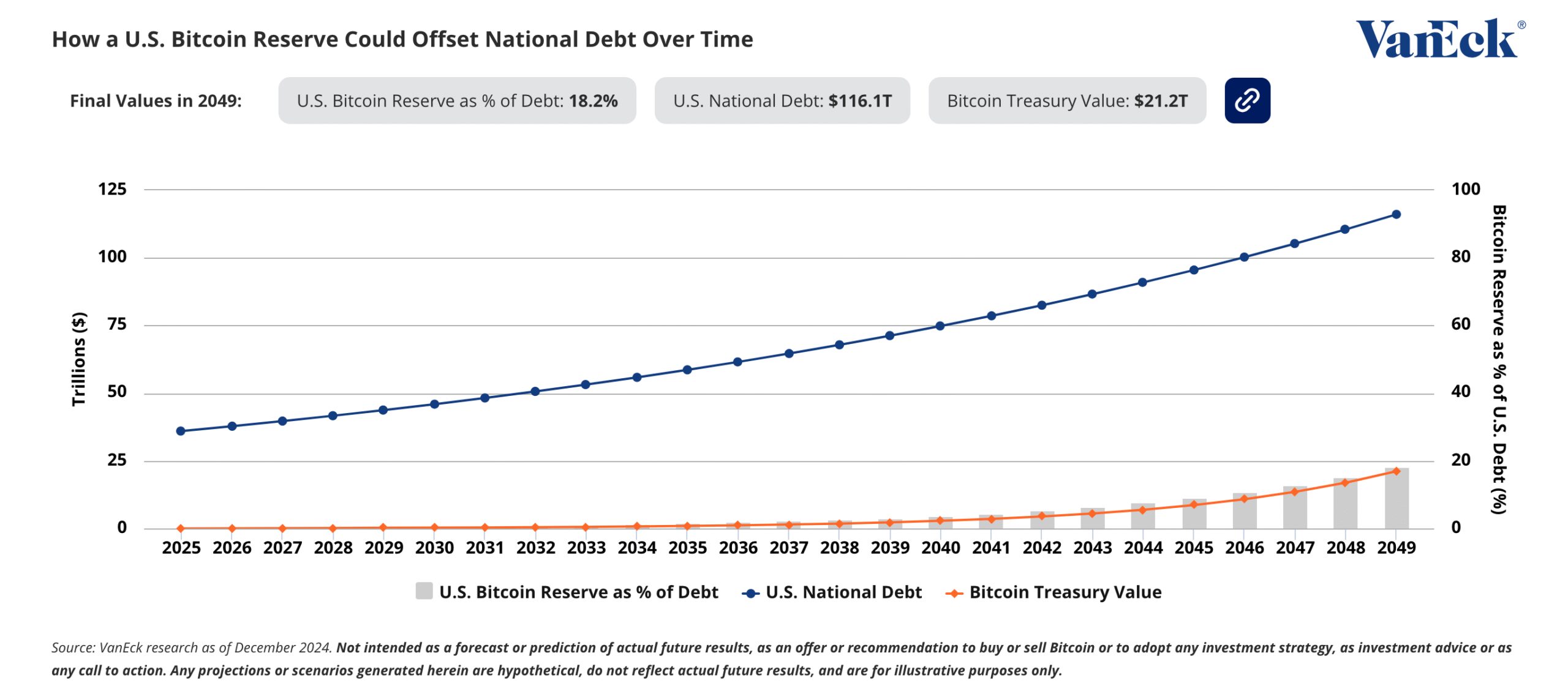 How a U.S. Bitcoin Reserve Could Offset National Debt Over Time. Source: VanEck