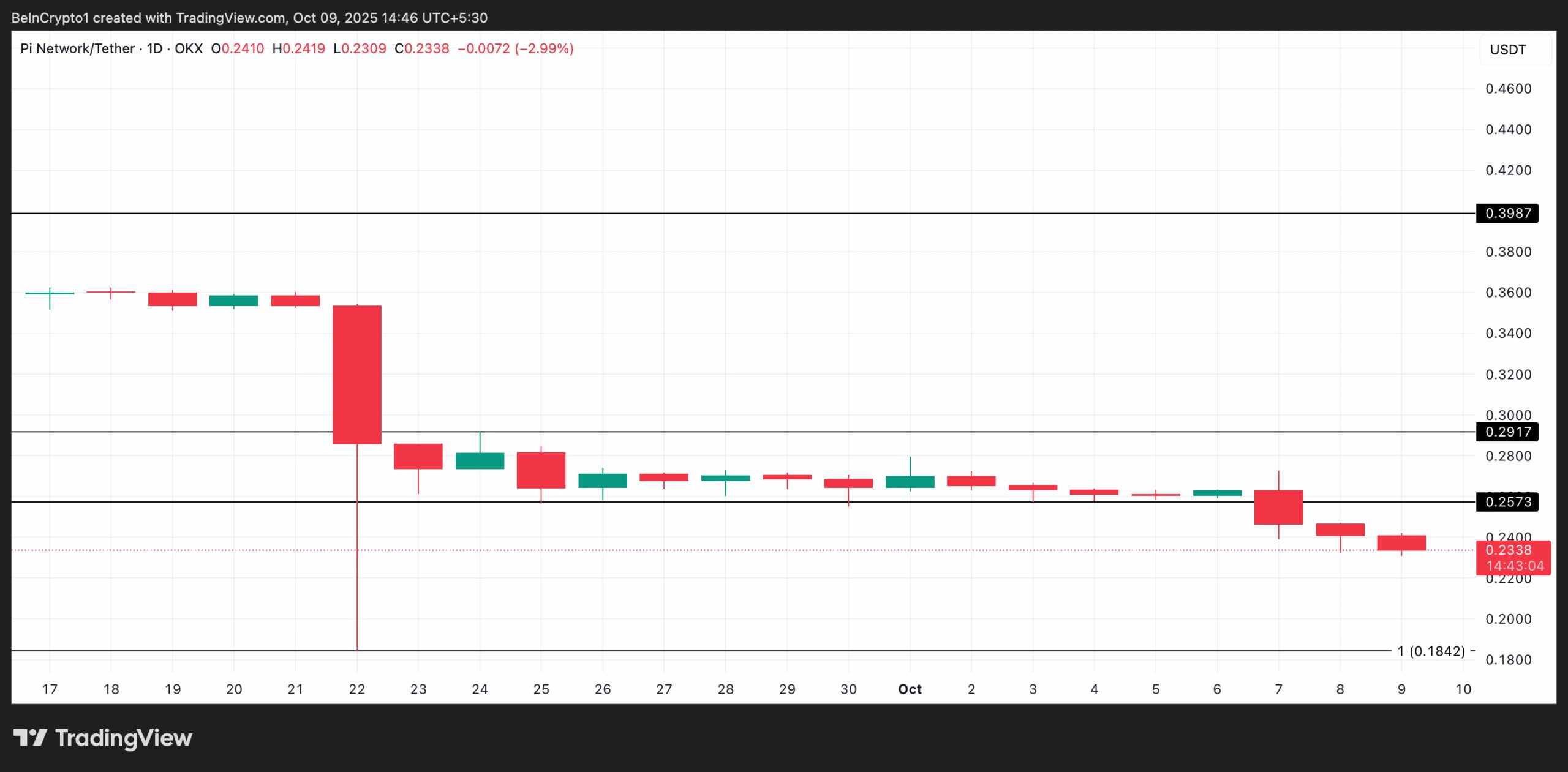 Pi Network’s native token, Pi, has broken below a critical support level that had held its price steady between September 23 and October 6, preventing any significant dips.